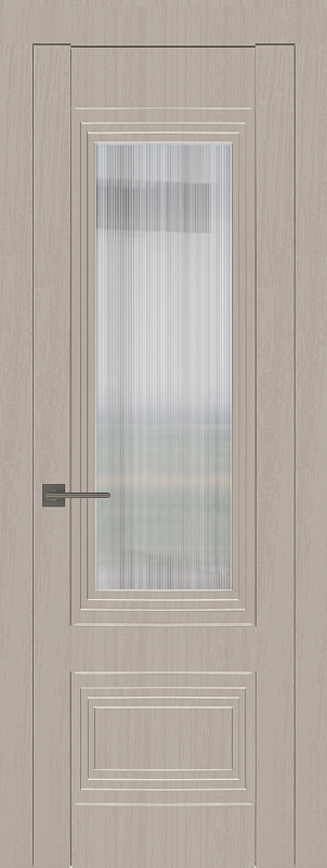 Царговые (сборные) двери изготавливаются в глухом и остекленном варианте в пленке с текстурой под натуральный шпон. В остекленной двери используется матовое стекло (сатинат) с витражным рисунком. Двери комплектуются телескопическим погонажом.
