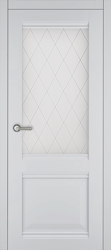 Царговые (сборные) двери изготавливаются в глухом и остекленном варианте в пленке с текстурой под натуральный шпон. В остекленной двери используется матовое стекло (сатинат) с витражным рисунком. Двери комплектуются телескопическим погонажом.