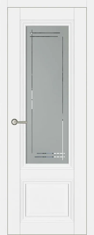 Царговые (сборные) двери изготавливаются в глухом и остекленном варианте в пленке с текстурой под натуральный шпон. В остекленной двери используется матовое стекло (сатинат) с витражным рисунком. Двери комплектуются телескопическим погонажом.