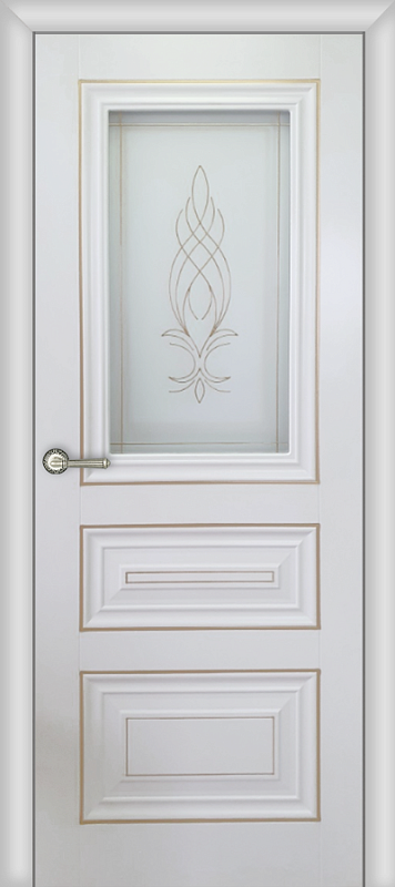 Межкомнатная дверь Carda Н-19 Эмалит белый с патиной золото Витраж