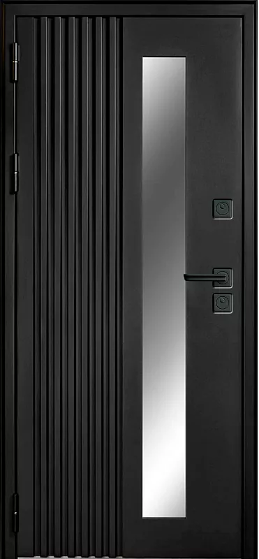 Входная дверь Carda Termo Premium 130 3к Черный металлик + Багет Интро + СТП зерк Silver Белый матовый Галеон графит